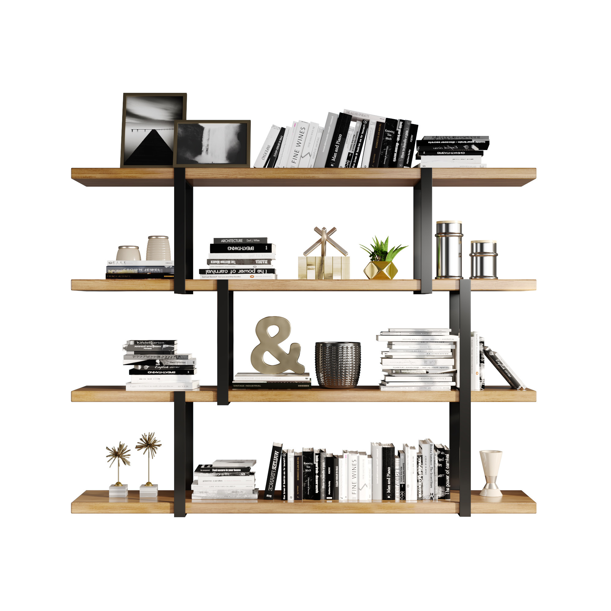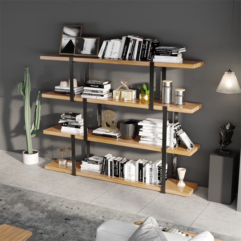 Simple industrial style shelf wrought iron solid wood bookshelf floor modern living room display rack office partition partition shelf