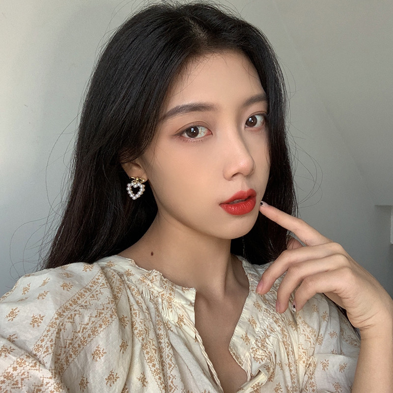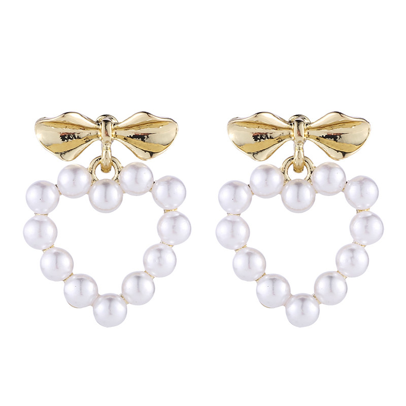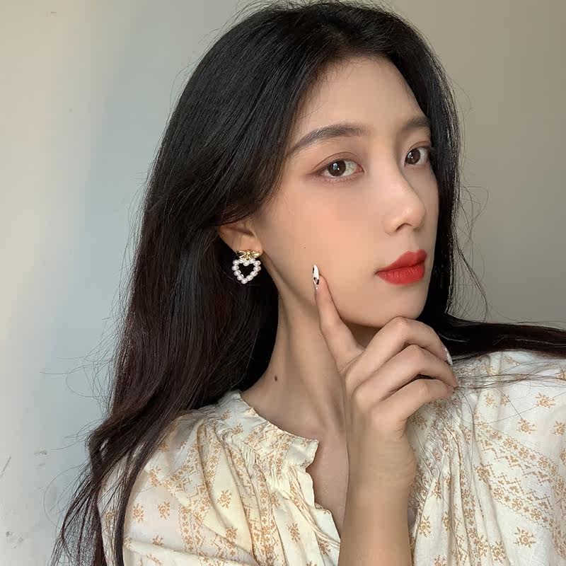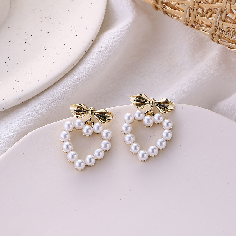women's sweet love pearl earrings in japan and korea net red simple bow stud earrings without hole earrings