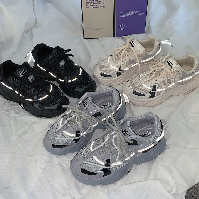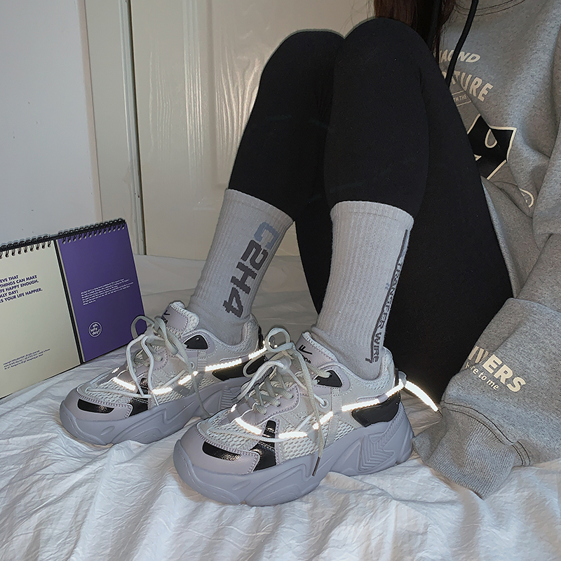 Pull back women's shoes net red reflective dad shoes female ins tide 2022 autumn all-match thick bottom street shooting sports casual shoes