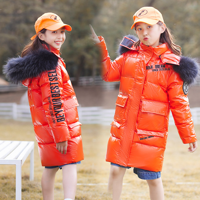2021 New Children's Feather Dress Boys in Long - Term of Children's Girls Winter Bright Costume