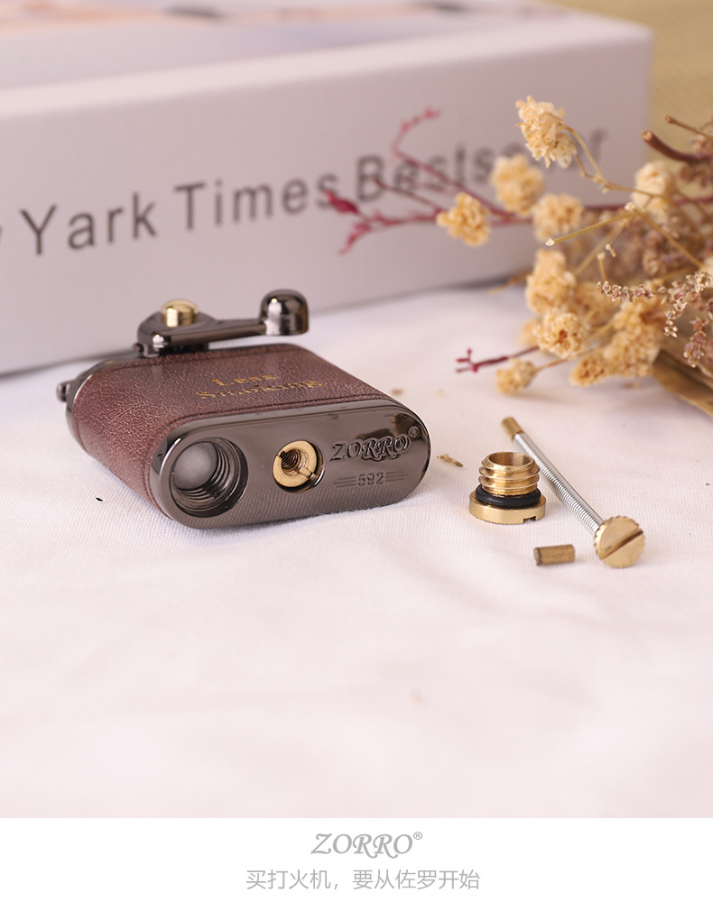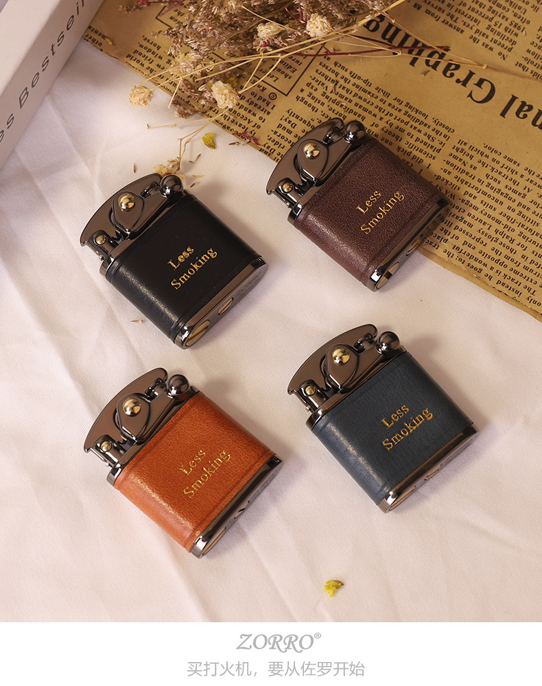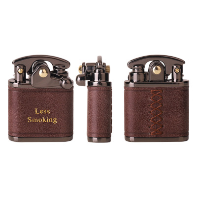 Imported quality high-end light luxury simple fashion oil wax leather bronzing pure copper lighter Suluo kerosene lighter