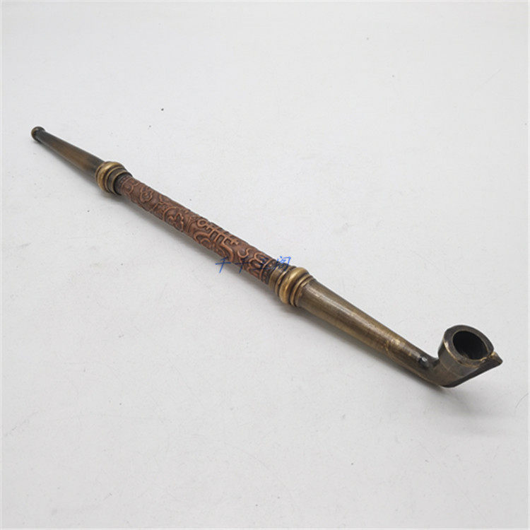 Traditional old-fashioned dry cigarette bag brass dry smoke infighting inlaid with antique smoke gun thickened and integrated copper tobacco