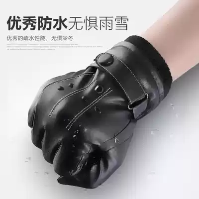 Gloves Men and Women's Universal Winter Cycling Plus Pickened Electric Car Windproof Waterproof Warm Touch Screen Leather Gloves