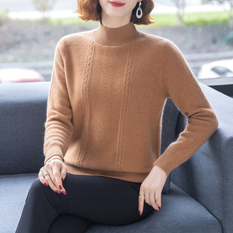 Brand cashmere shirt 100 pure cashmere shirt loose middle - age thickening high - end wool blouse in autumn and winter