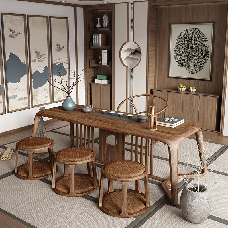New Chinese Walnuts Wood Tea Table Modern Zen Mind Home Solid Wood Tea Table And Chairs Combined Log Kung Fu Balcony Tea Table