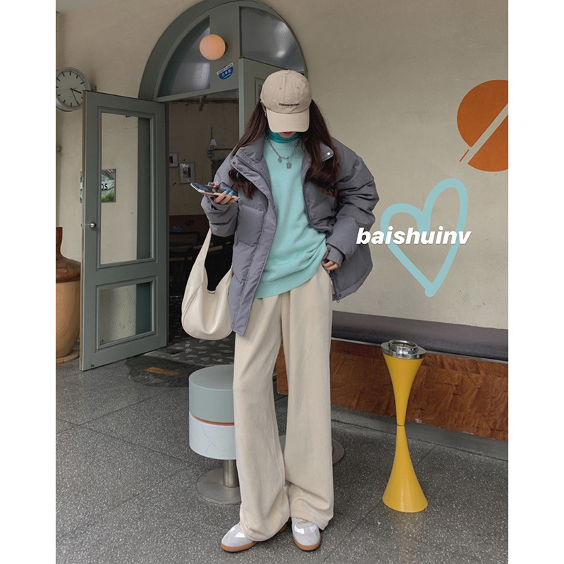 White water women's bread down jacket women's spring and autumn new thickened warm Korean version loose medium and long version of white duck down jacket