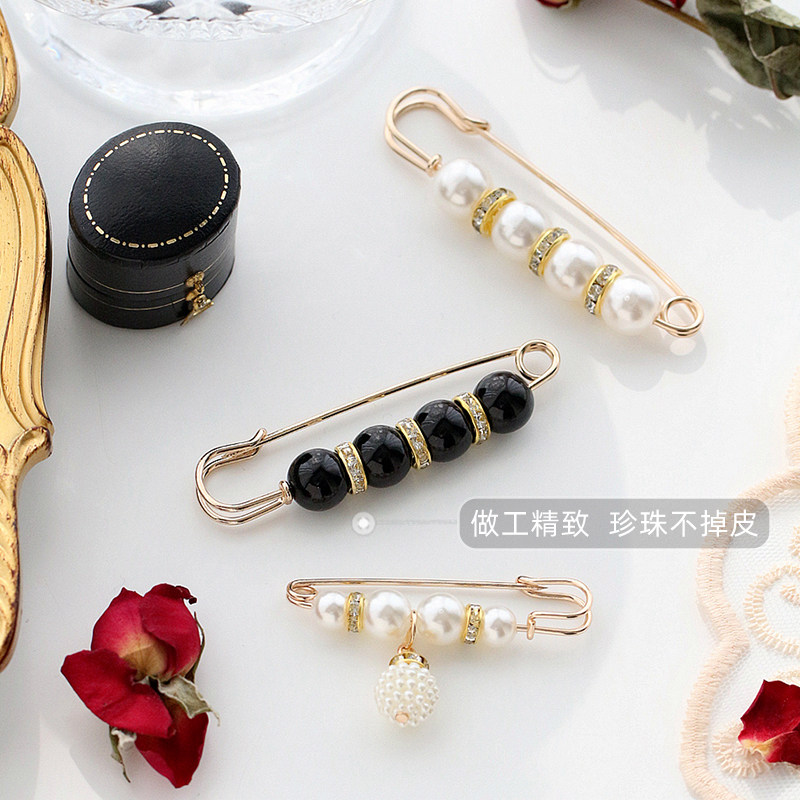 Pearl brooch corsage high-end pin buckle female word small black clip accessories fixed clothes coat sweater atmosphere high-end