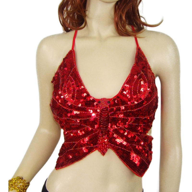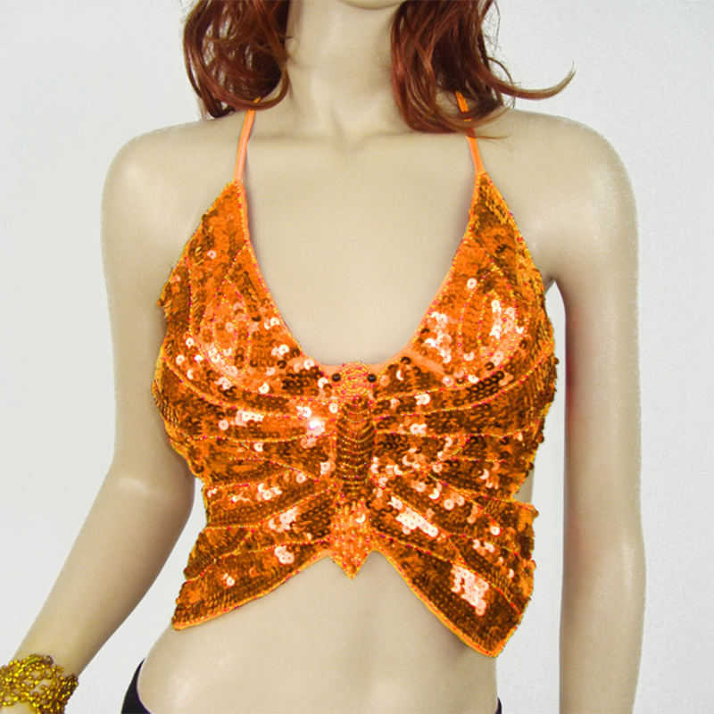 Belly dance top sequin straps butterfly top bead embroidered bra costume Indian dance belly pocket butterfly bra