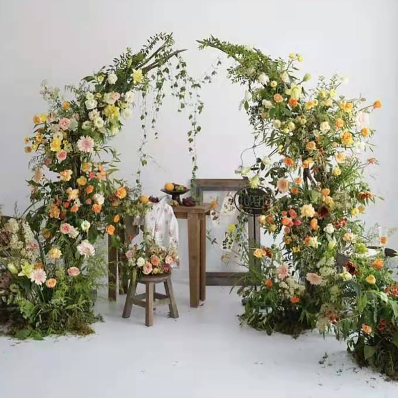 Forest wedding semi-circular arc arch flower stand horn crescent arch wooden frame wedding road lead flower arch shelf