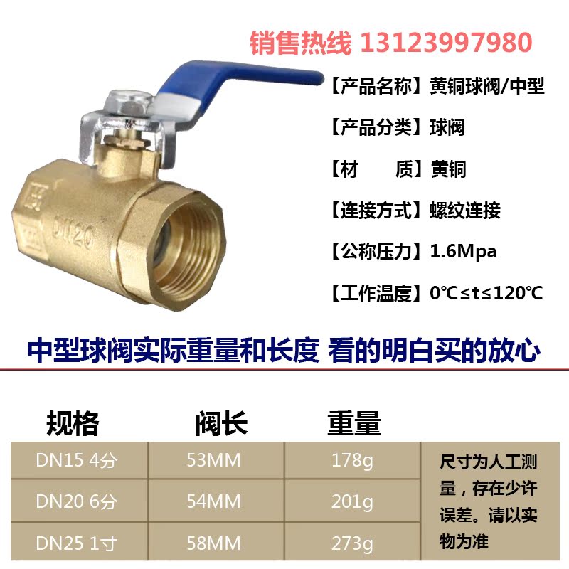 All copper natural gas inner and outer wire copper ball valve tap water valve water switch 4 points 6 points DN15 20 25 2 points 3 points