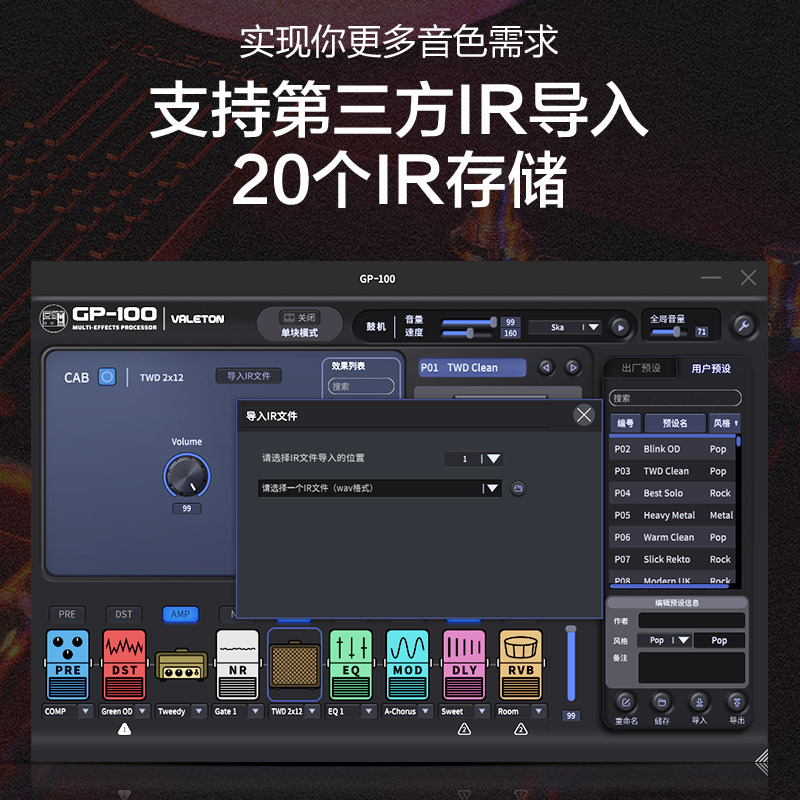 GP100 electric wood guitar bass speaker simulation IR with drum machine looper sound card Valeton comprehensive effect device