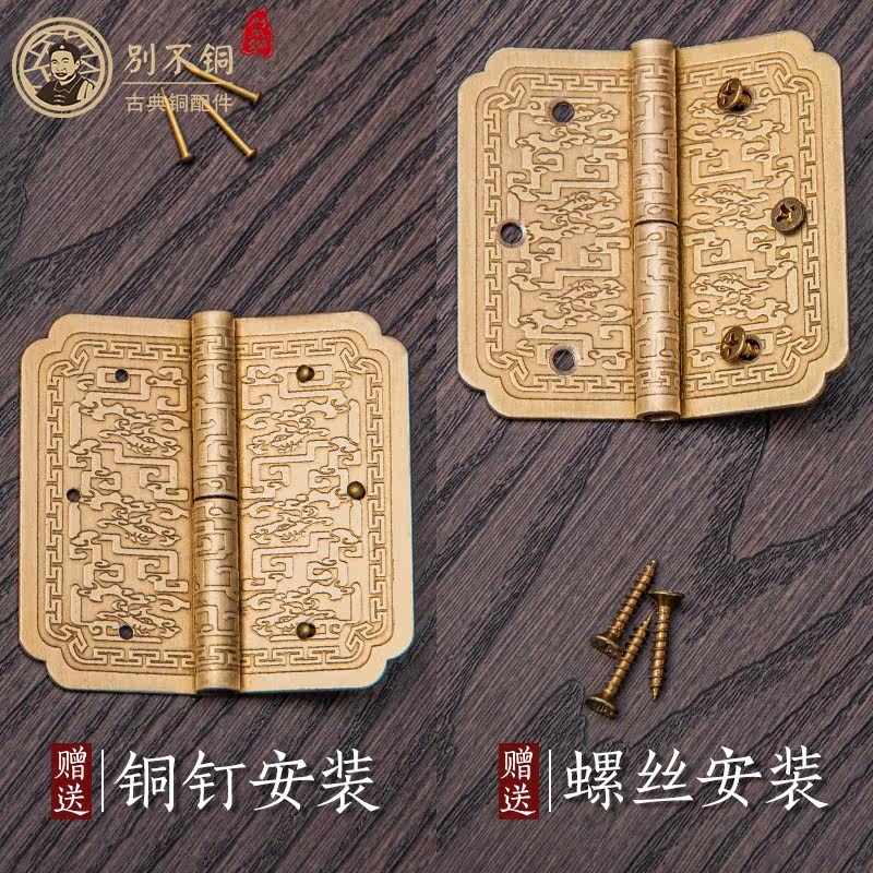 Copper Hinge Pure Bronze Antique Chinese Style Retro Full Bronze Folding Screen Folding Screen Folding Page Ancient Bronze Color Brass 3 Inch Flat Open Hinge