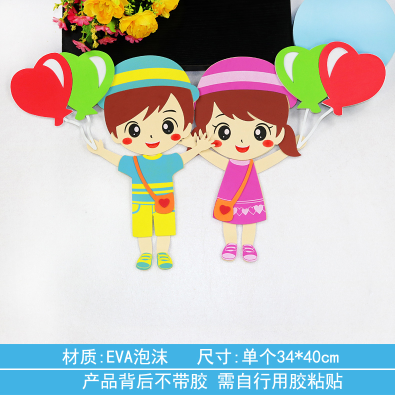 A pair of children with balloons, a pair of children with swings, a teacher and a student, a pair of planting children, a pair of sports children, a pair of 6 books for decoration, colorful children with bubbles, boys and girls with pens, cartoon boys and girls