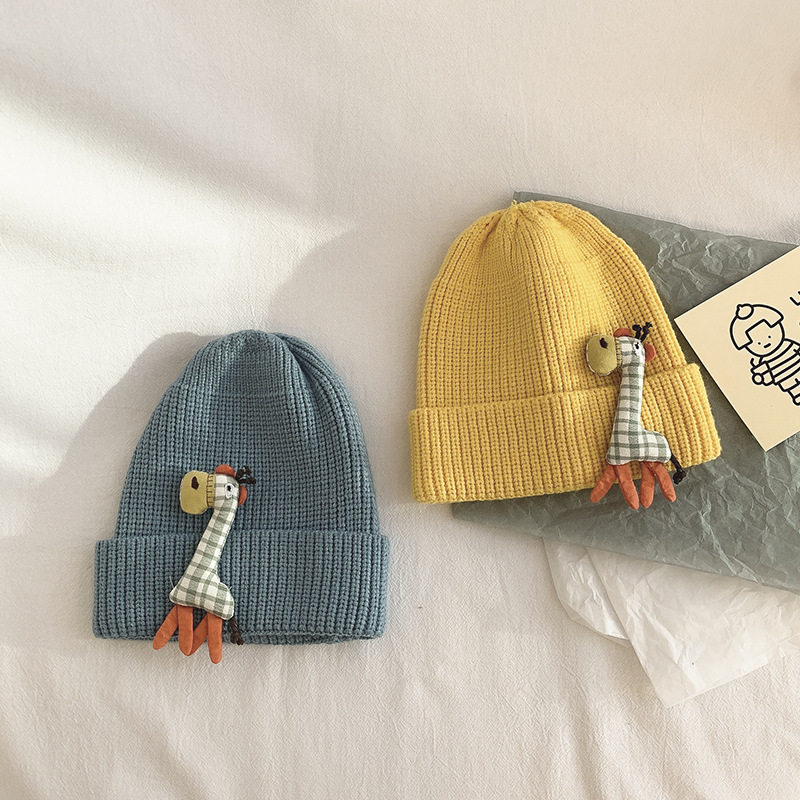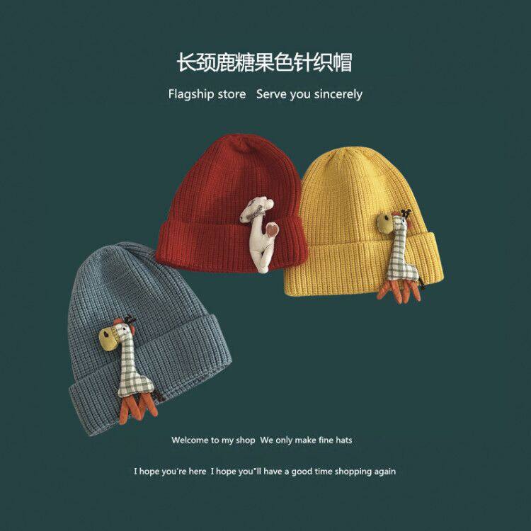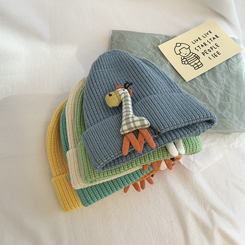 Knitted vertical striped giraffe child casual cap male and female baby fall winter warm hat Han version cute hair line hat