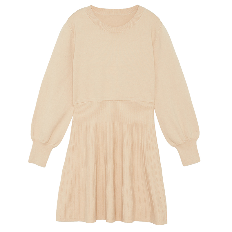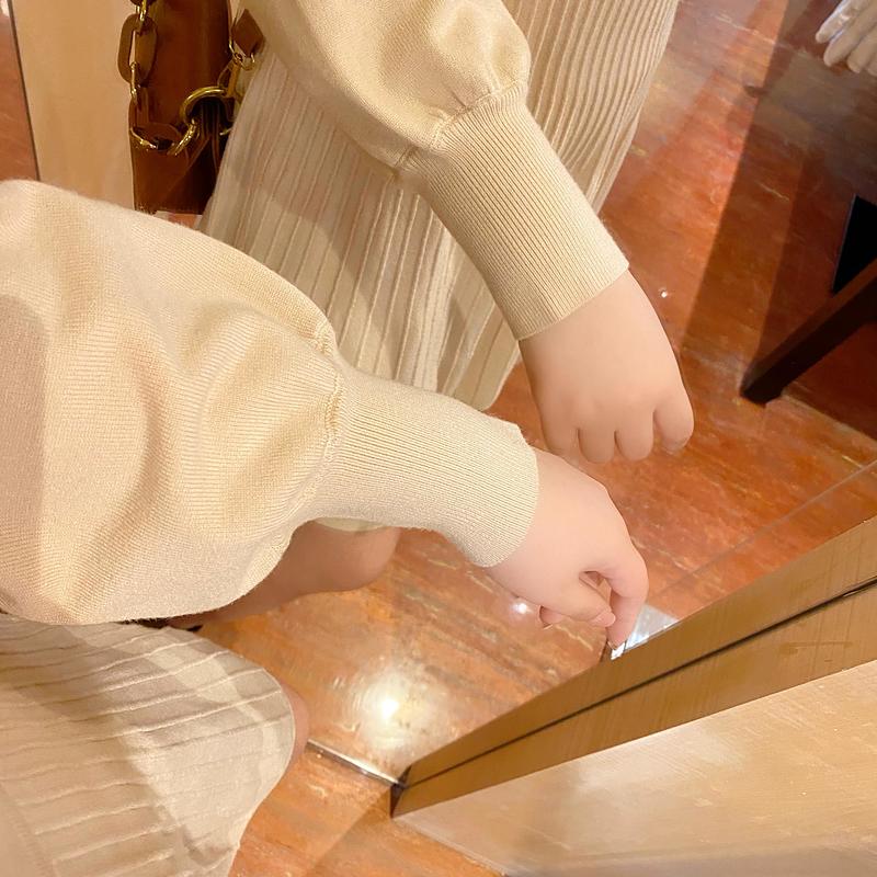 Take Duobao large size fat mm Korean version of the women's autumn and winter high-waisted lantern sleeves knitted meat cover meat show thin black light cooked style dress