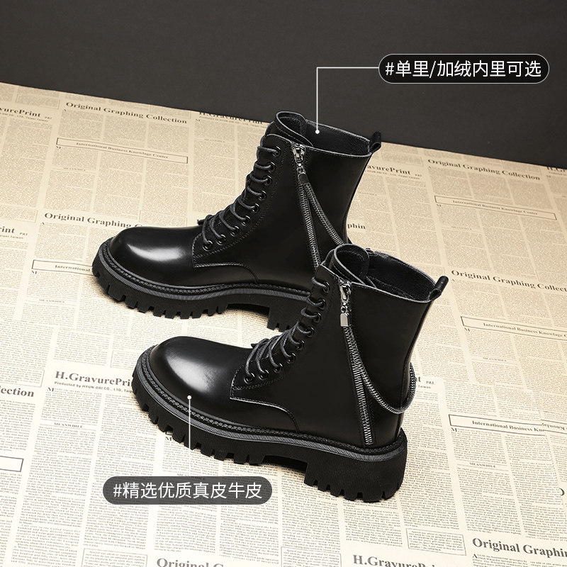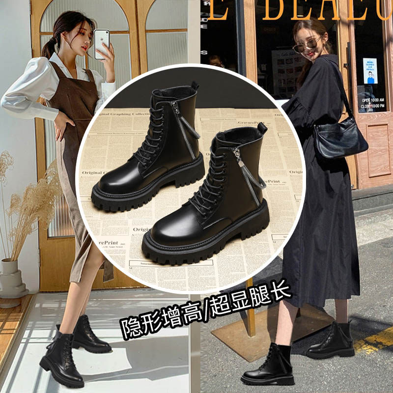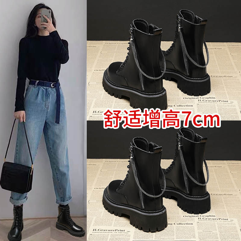 Leather Martin boots women's British style autumn 2022 new all-match inner height increased 8cm small skinny short boots
