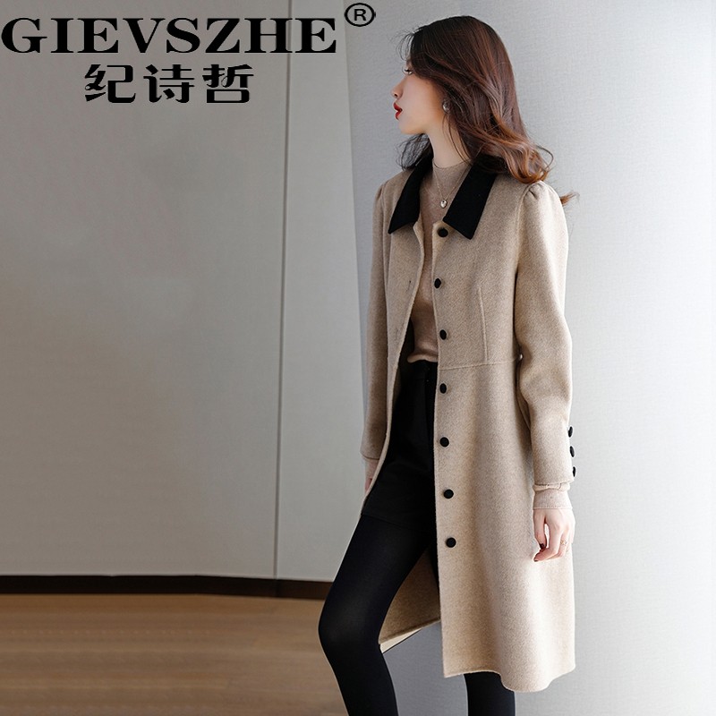 The Documentary Philosophy Mao Jacket Woman 2020 New autumn and winter cashmere temperament slim in the middle of a long version of the moose