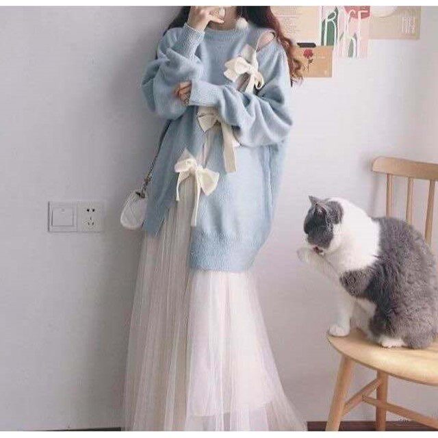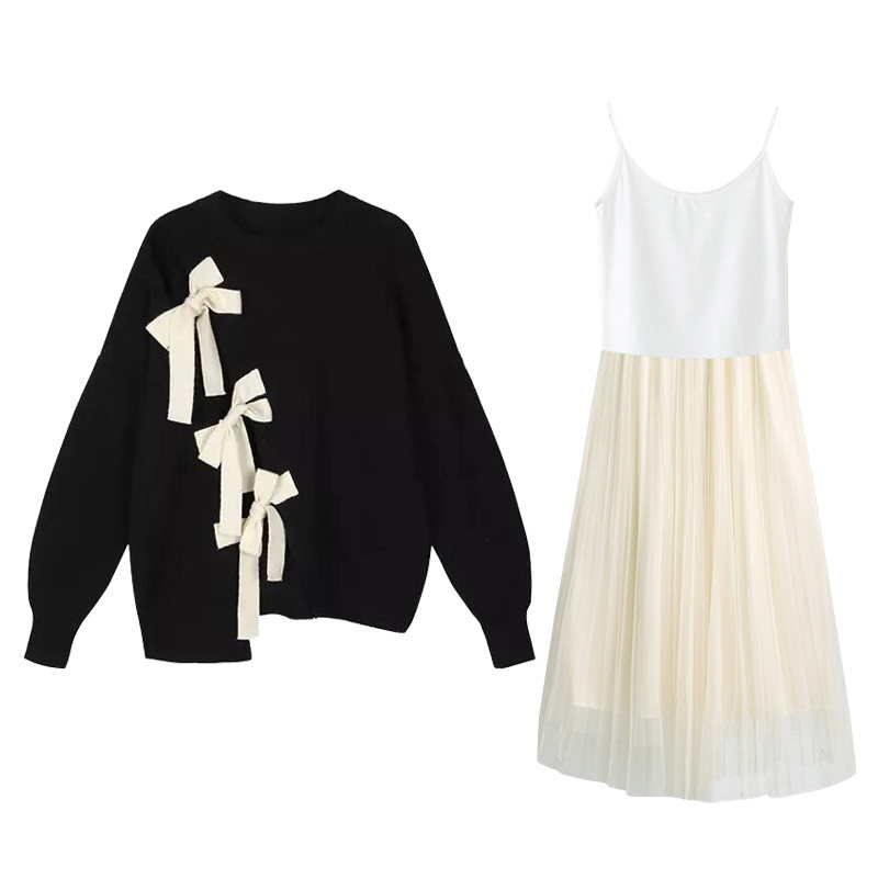 BLACK SWEATER MESH YARN PENDANT WITH SKIRT SUIT BLUE SWEATER MESH YARN PENDANT WITH SKIRT SUIT WEB YARN PENDANT WITH SKIRT