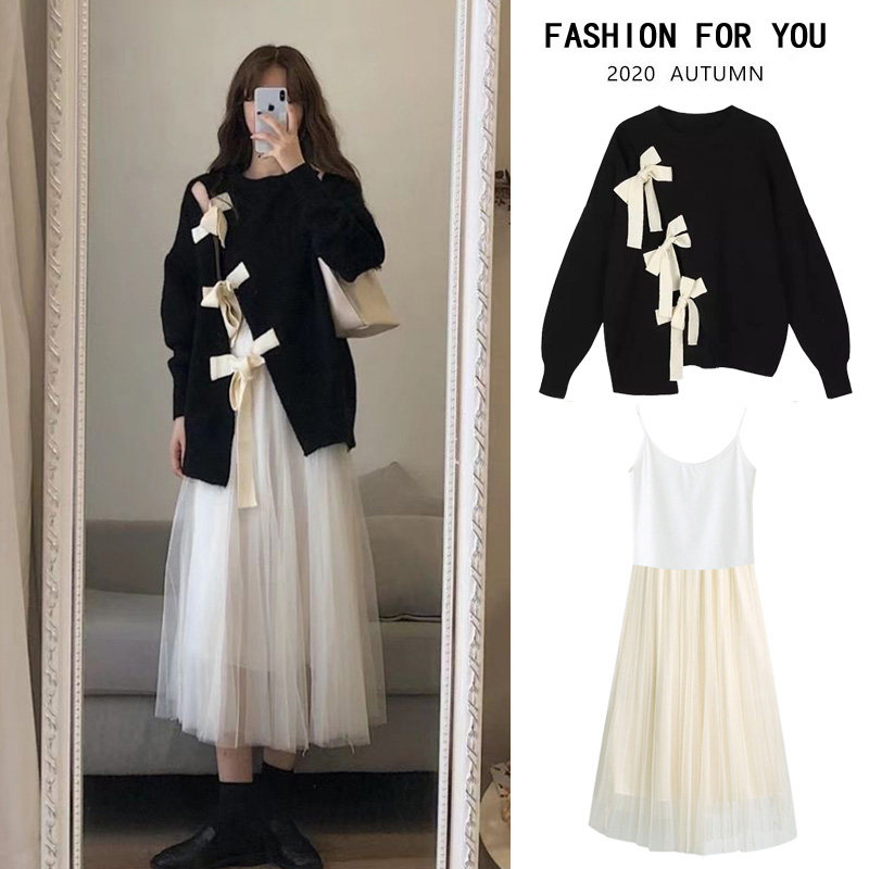 Gestational Woman Dress 2021 Autumn Winter New Light Cooked Gentle Wind Super Fairy Air Sweater Mesh Yarn dress Two-piece style suit