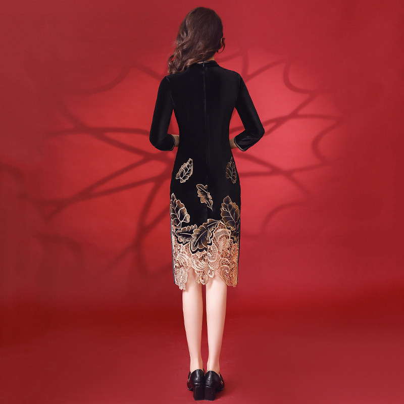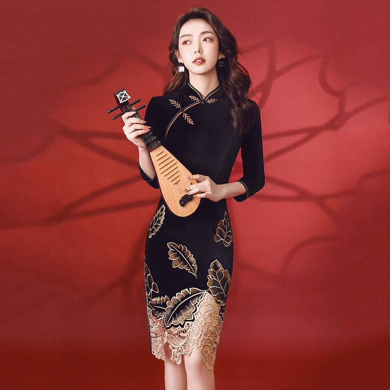 2021 new cheongsam black short retro temperament young girl improved version of velvet dress summer