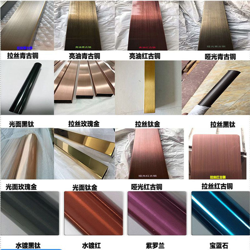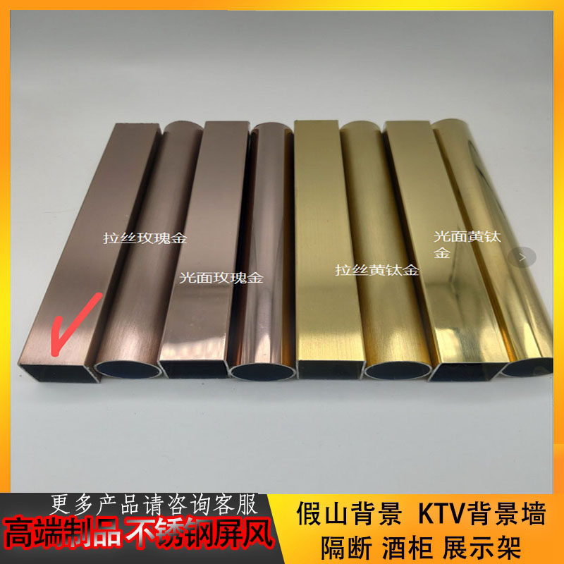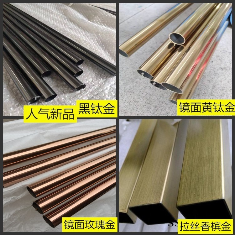 Rose gold stainless steel round tube Brushed yellow titanium alloy square tube Black titanium champagne gold flat tube Decorative color tube