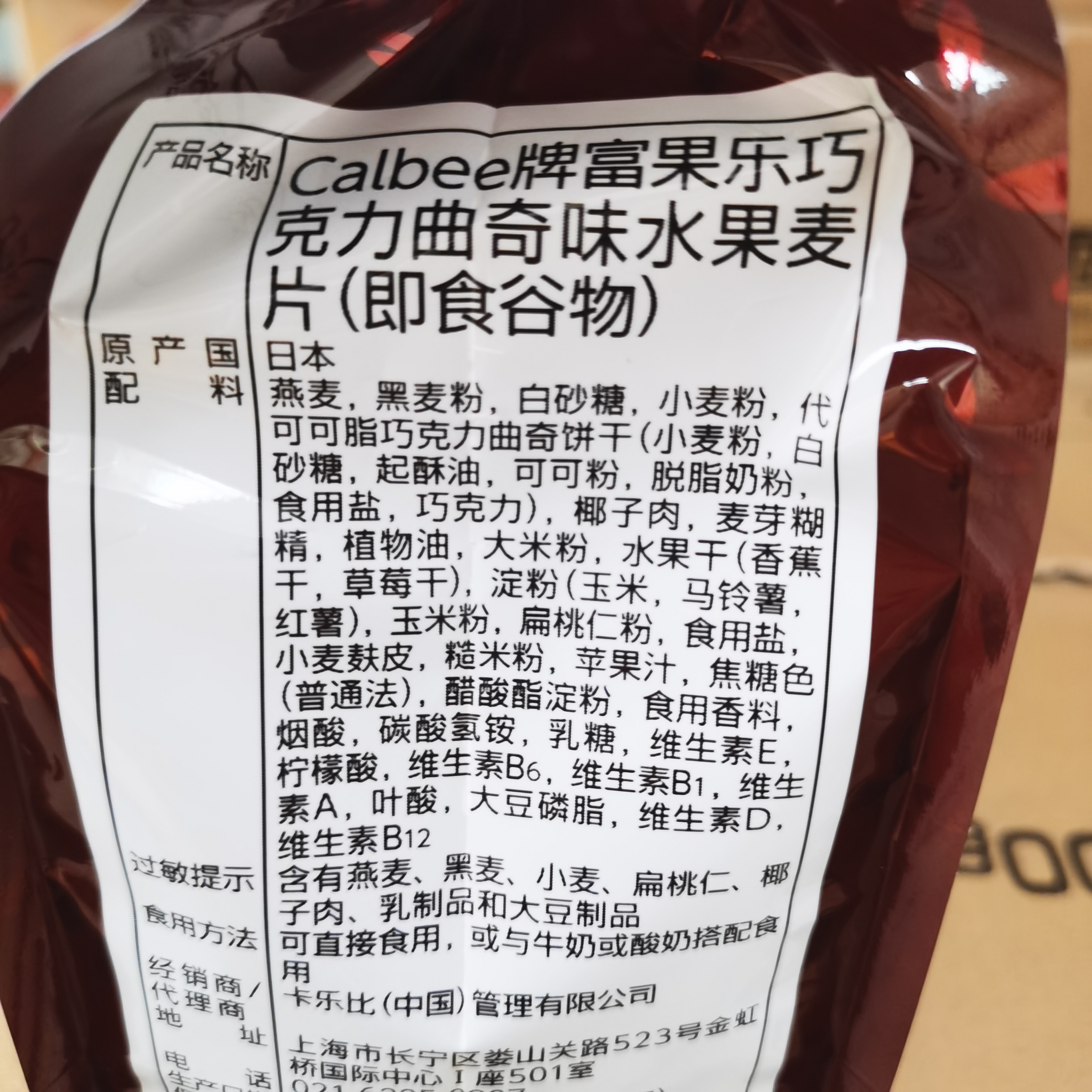Japan's Calbee Calbee Kalebi Fuguole Fruit Oatmeal Chocolate Cereal 500g Nutritious Ready-to-eat Breakfast Meal Replacement
