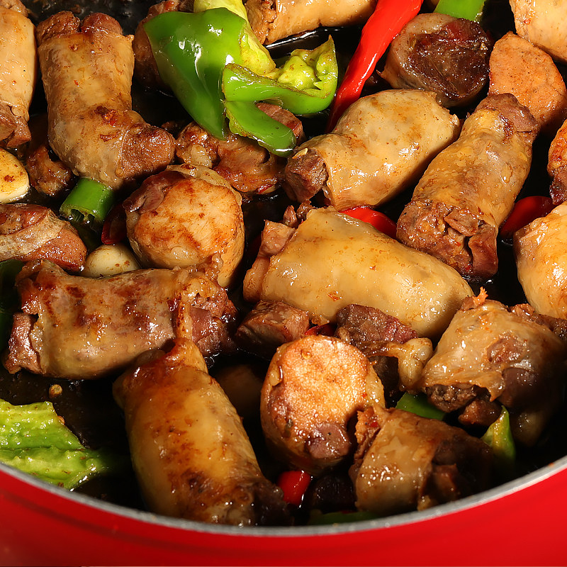 Boneless lamb fat intestines lamb heart shallot ginger edible salt peppercorns