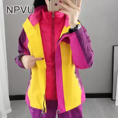 NPVU Korean version of the color-matching outdoor stormtrooper women's three-in-one removable waterproof breathable cotton liner mountaineering suit winter