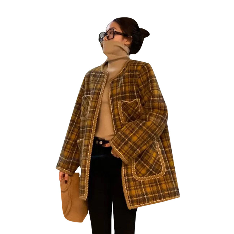 sandro tonali small fragrant wind plus suede coat female winter Korean version retro port flavored with medium long version blouse