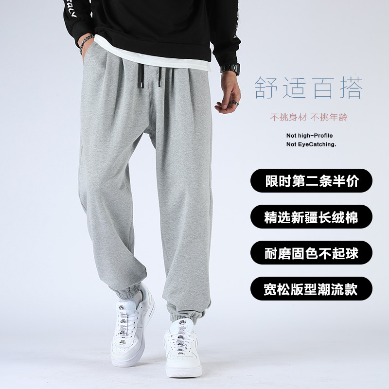 Gray loose sports thick cotton pants men's trend casual pants large size beam feet spring summer spring thin section fat student