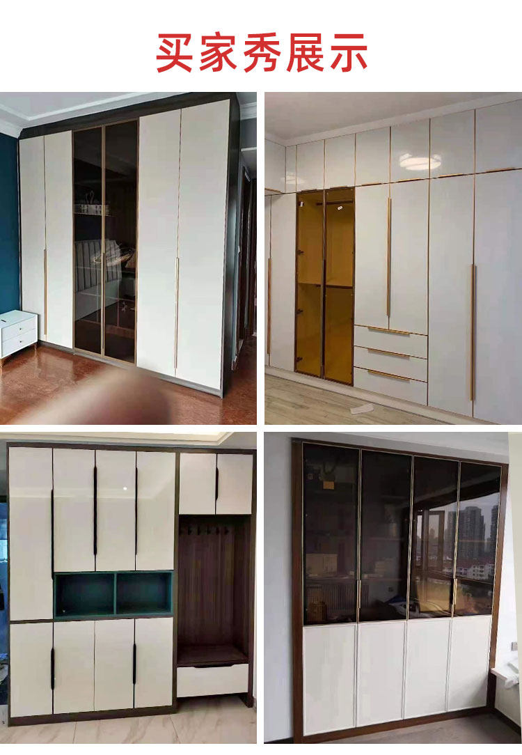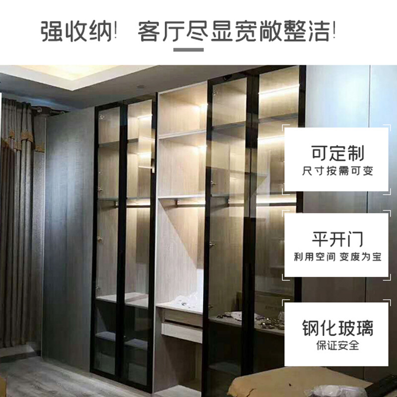 Light Extravagant Minimalist Narrow Side Aluminum Alloy Tempered Glass Wardrobe Door Wine Cabinet Glass Flat Door Bookcase Factory Customize