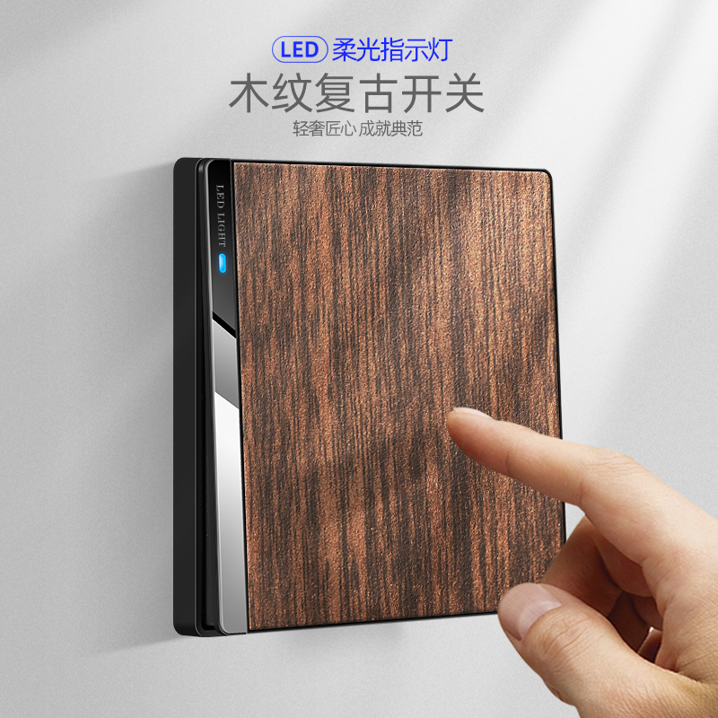 86 type concealed home improvement household switch socket two three plug with 5 holes five holes wall stainless steel wood grain panel