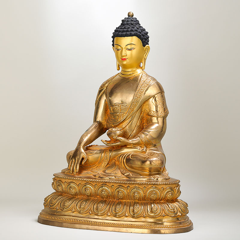 Clear Barn Junction with great Tibetan Zen decoration Sakyamuni Buddha statues swaying pieces All-of-the-gold pure bronze Buddha stands for Buddha 10 inches