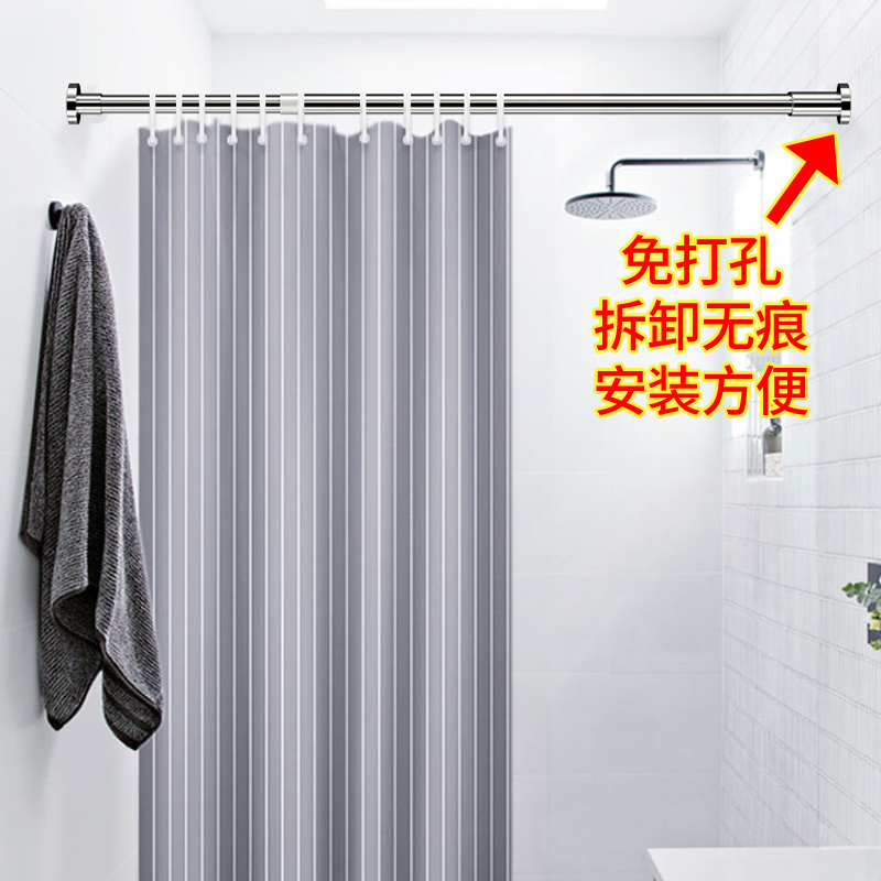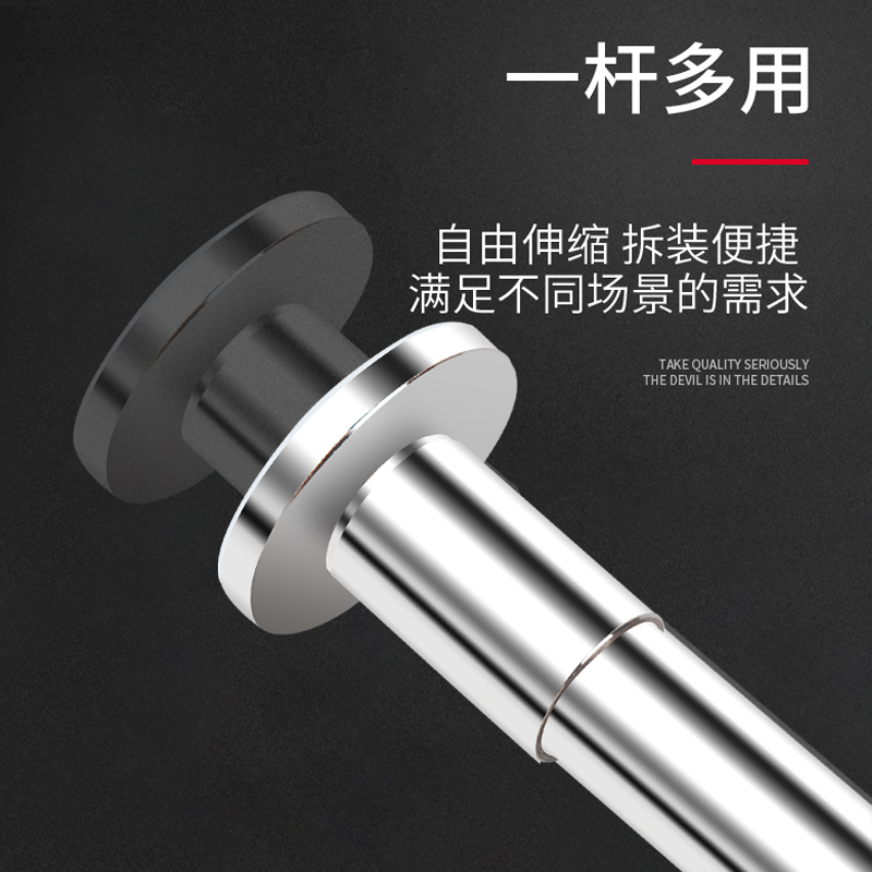 Telescopic rod punch-free thickened 304 stainless steel shower curtain rod super load-bearing clothes rail curtain rod wardrobe hanging rod