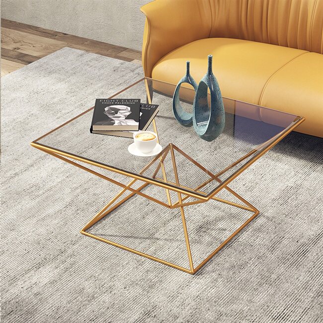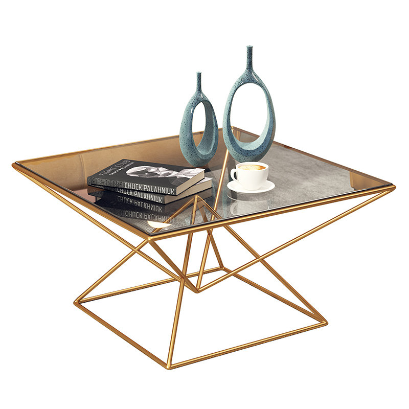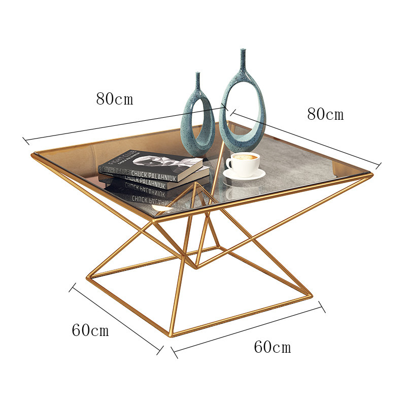 Modern minimalist tempered glass tea table golden Nordic iron art living room decent board room sofa creative personality small family