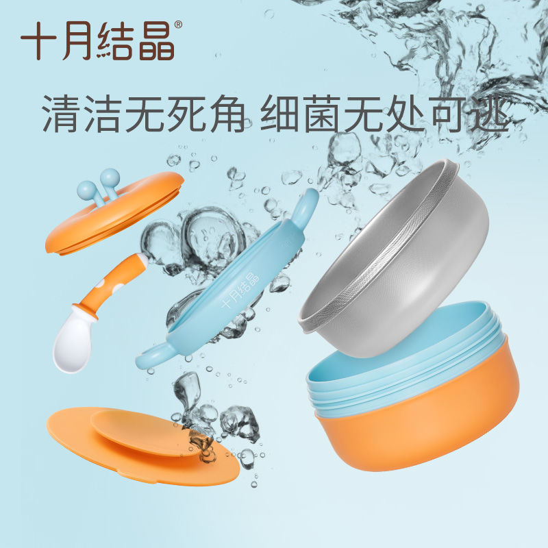 October crystal baby insulation bowl non-staple food bowl for infants and young children water injection children's bowl dinner plate suction spoon children's tableware