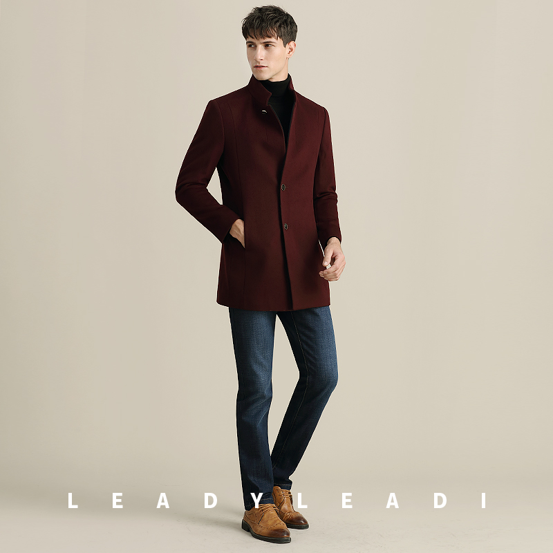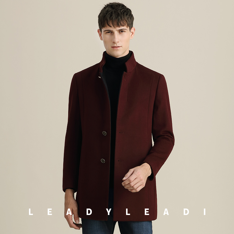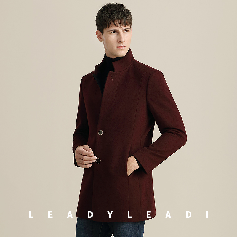 Liqi wool coat men's long winter slim collar youth solid color wool coat jacket fashion official website