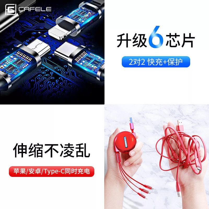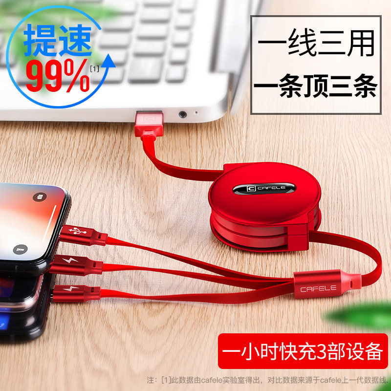 Card Fila charger three-headed three-in-one suitable for Apple Huawei phone plug-in quick-filling suit universal punch