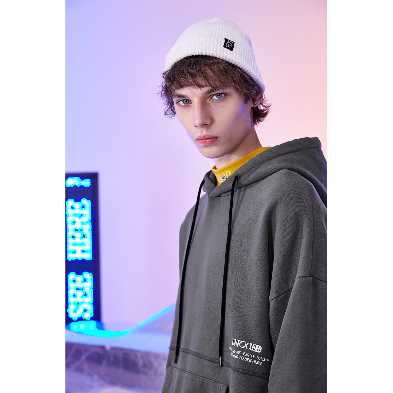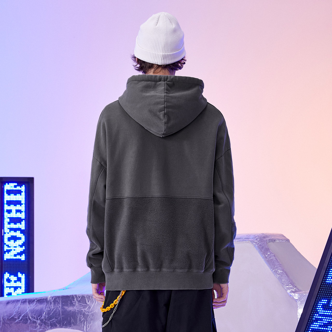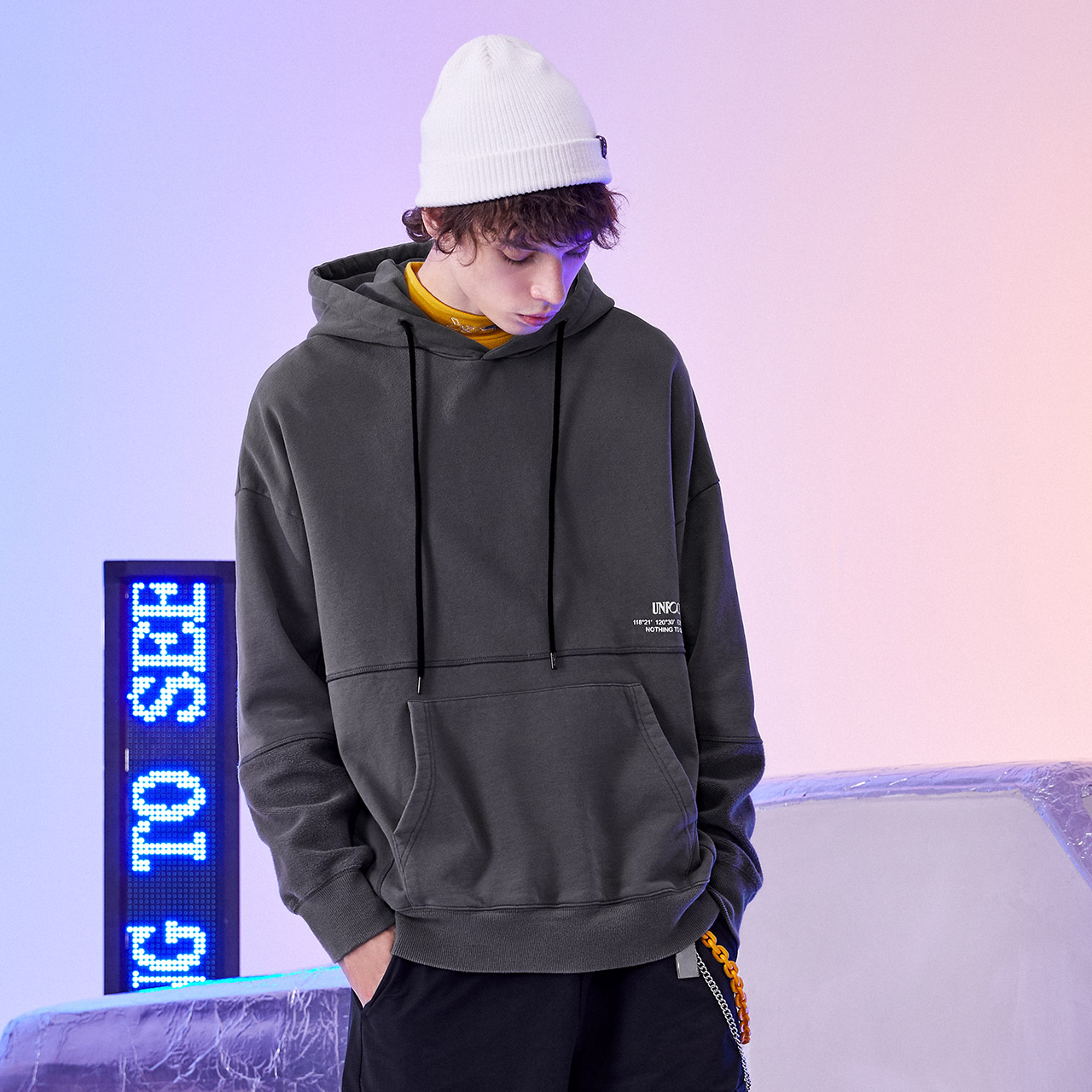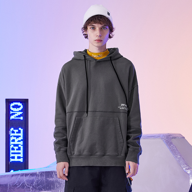 Lilbetter sweater male ins off shoulder trend port wind kangaroo pocket top lazy wind stitching contrast color inner match LB