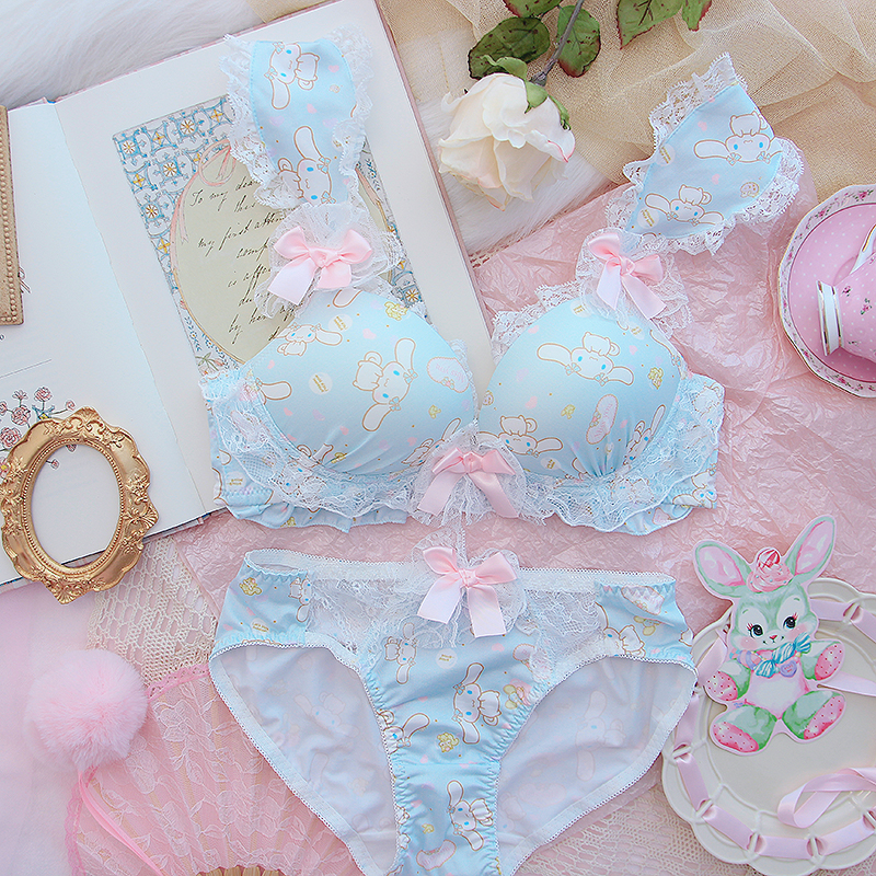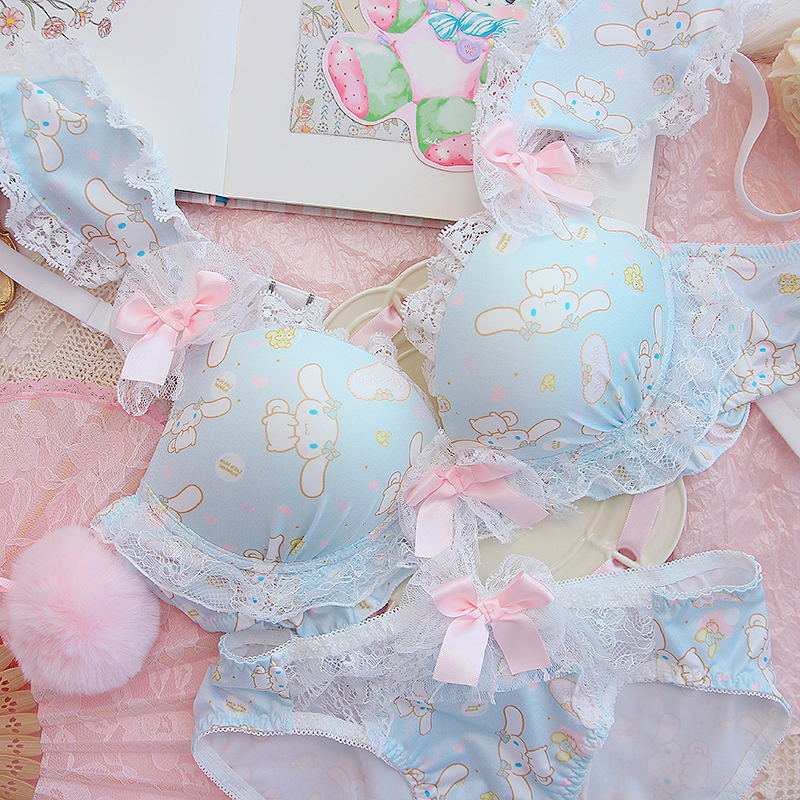 Can Love Yugui Dog Underwear Girl Heart Soft Cute Sweet Beauty Lace Small Chest Coalesque thickened No steel ring Vin Bra Suit