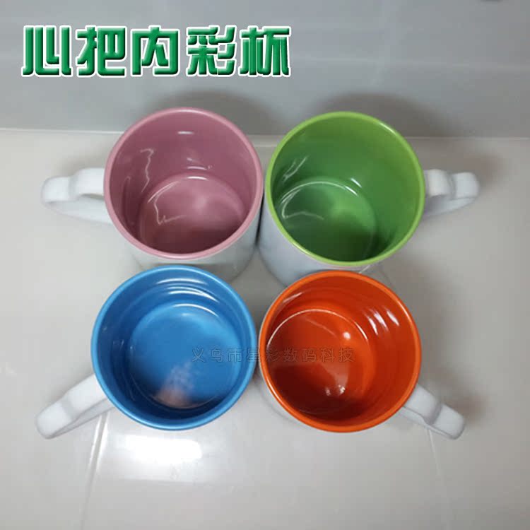 Thermal transfer cup coated cup love handle blank mark color image cup heart handle inner color cup wholesale
