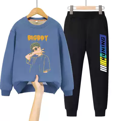 Boy plus velvet suit thickened children's autumn and winter sports big children's winter clothing warm 2021 new children's clothing
