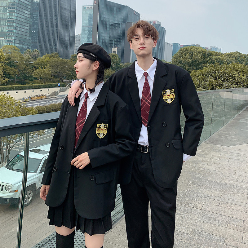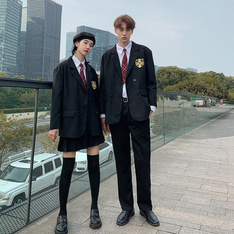 jk uniform skirt genuine female class uniform suit student sports meeting dk high school boys long-sleeved shirt couple full set