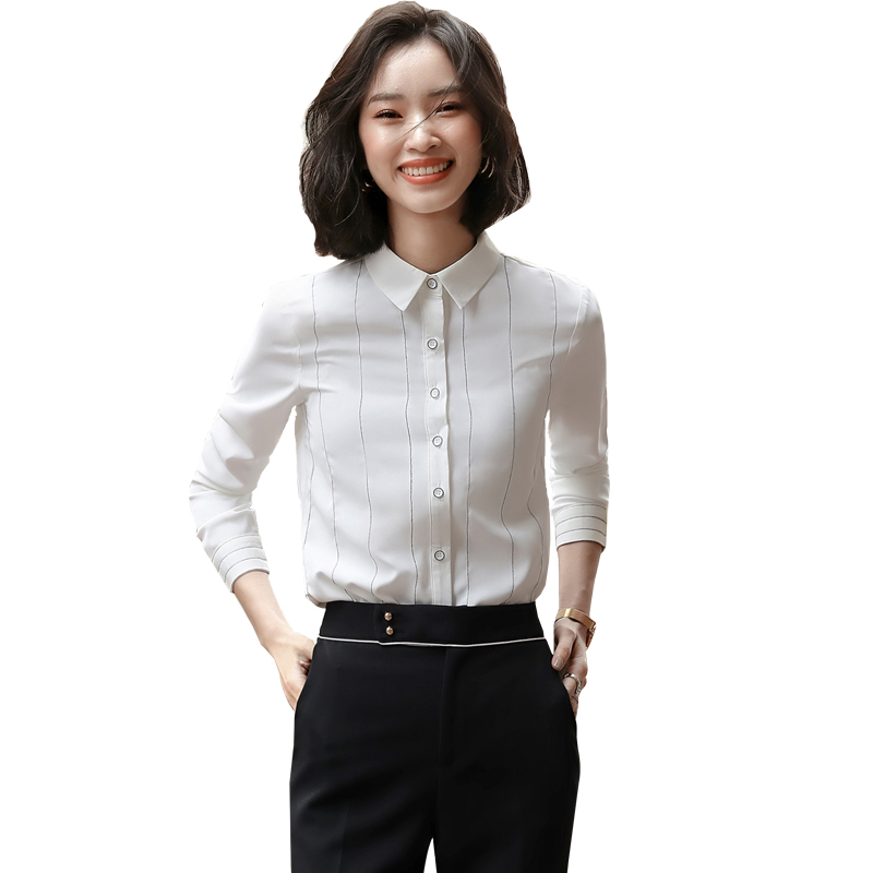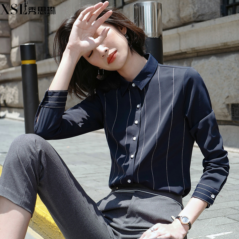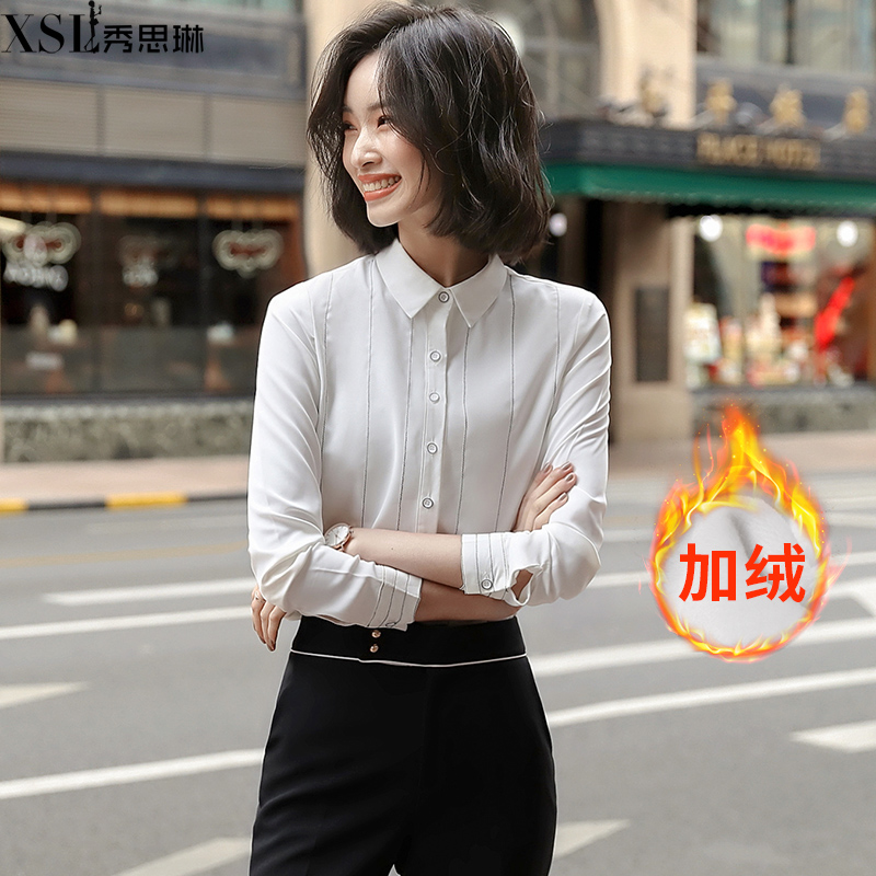 Striped shirt women's professional top 2022 new autumn and winter temperament slim long-sleeved fleece all-match high-end shirt