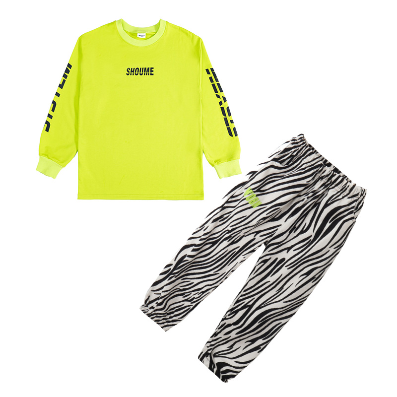 White striped trousers Boys' green thick T-shirt White striped trousers (hairband) Girls' green top Boys' green thick T-shirt White striped trousers (fisherman hat) Boys' green thick T-shirt