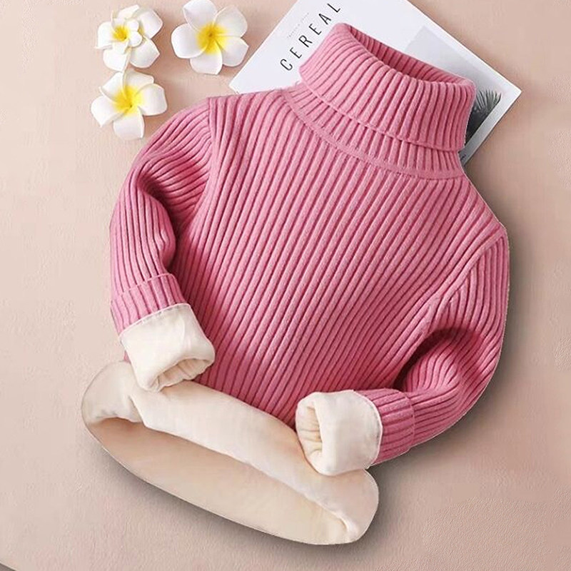 Girls black sweater plus velvet thick knitted sweater Western style children's high-neck sanitary clothes baby warm pullover bottoming shirt