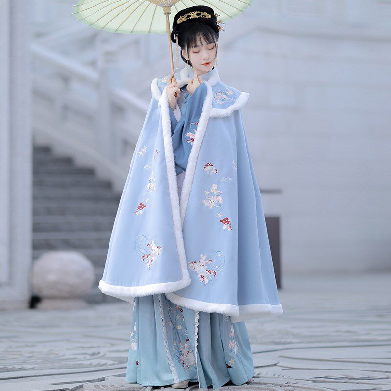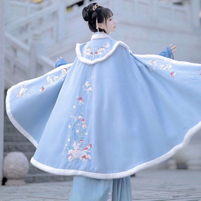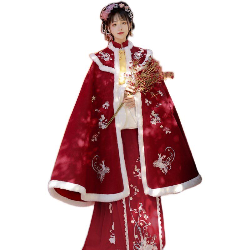 Cloak Hanfu female original Chinese style winter velvet thickened red embroidery New Year's Eve costume cloak warm jacket