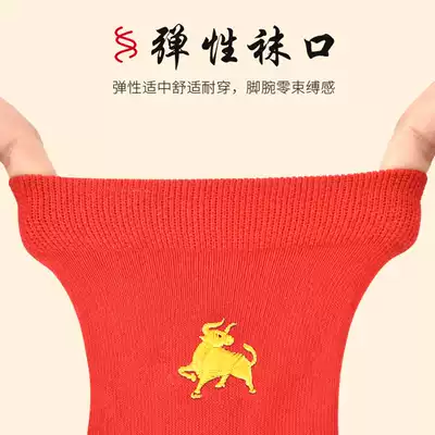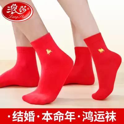 Langsha red socks This year of life socks men's pure cotton men's and women's cattle married couples all-cotton red cotton socks step on the villain