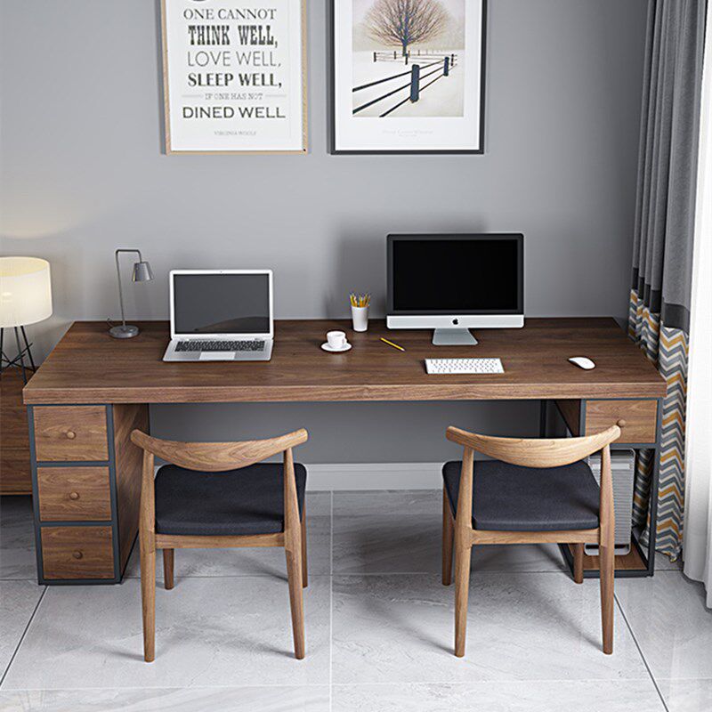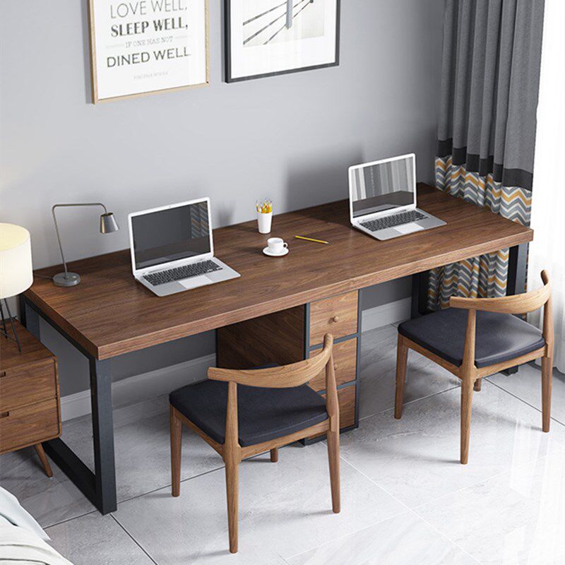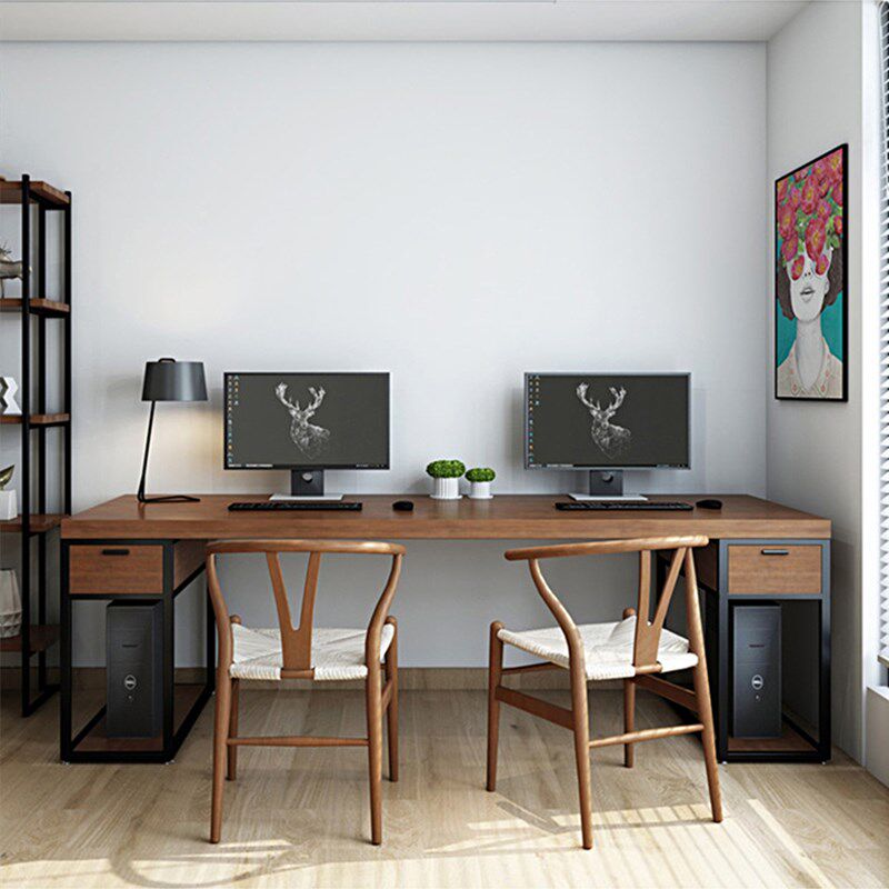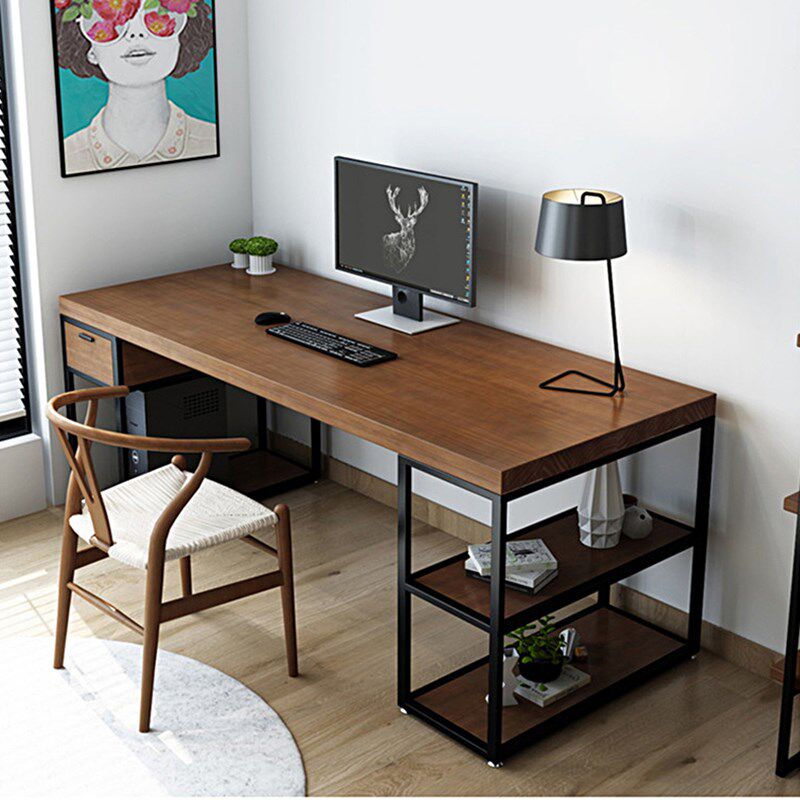 American loft double solid wood computer desk home desk log desk with pumping and writing desk iron art working table-Taobao