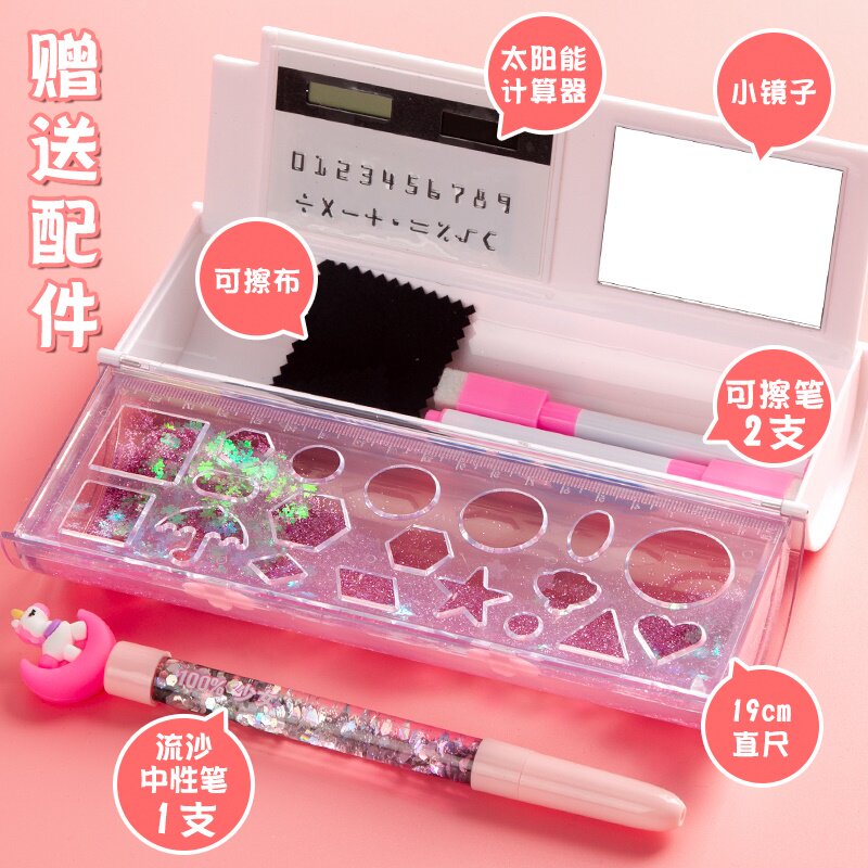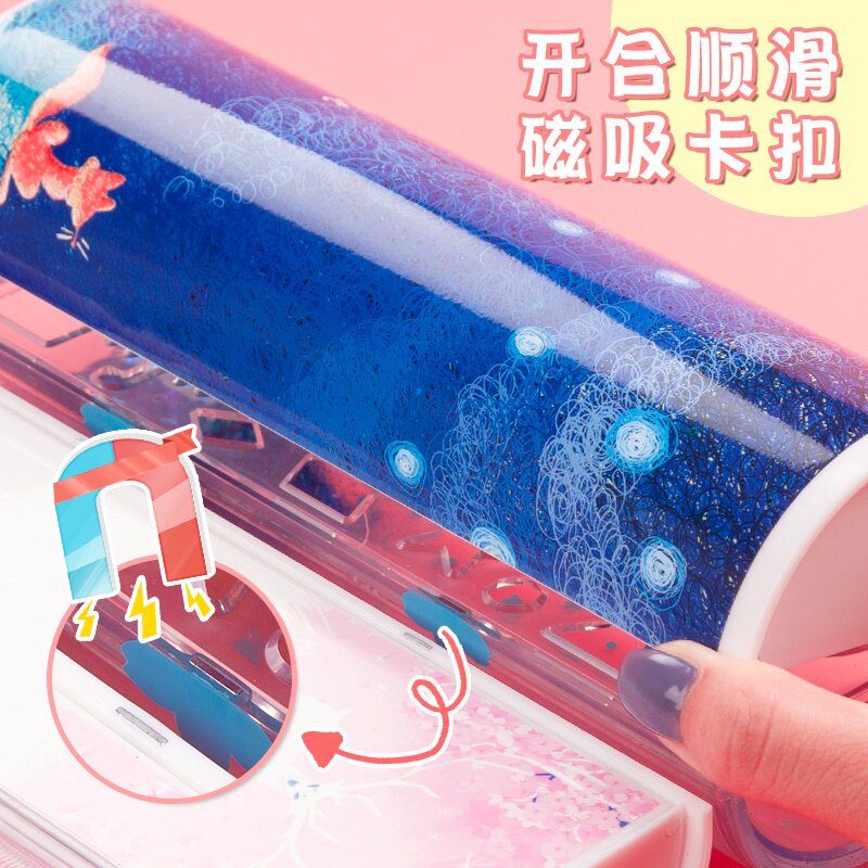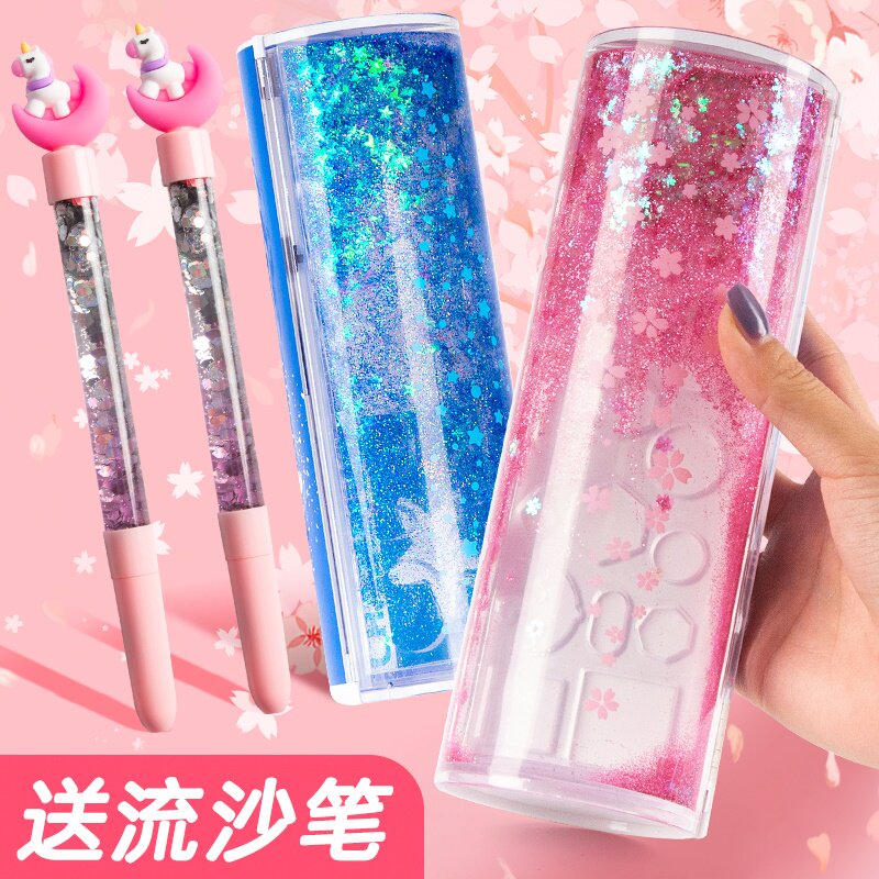 Net red quicksand stationery box creative ins tide girl boy primary and secondary school students multifunctional pencil box kindergarten children cute school bully cherry blossom cylindrical plastic pen box first grade